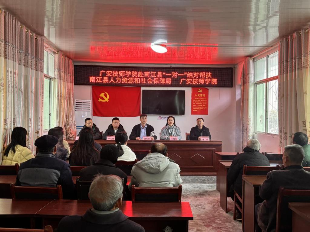 为深入贯彻落实省人社厅关于技工院校与39个欠发达县域“一对一”结对帮扶工作的决策部署,切实发挥技工院校服务区域经济社会发展的重要作用。12月6日,中共广安技师学院党总支副书记唐元刚带队,率学院综合部(党群工作部)、教学实训与就业部、招生与学生工作部(团委)、培训鉴定部等部门负责人组成帮扶小组,带领全体党员同志赴巴中市南江县,开展了以“党建引领促发展,结对帮扶谱新篇”为主题的党日活动暨“一对一”结对帮扶活动。