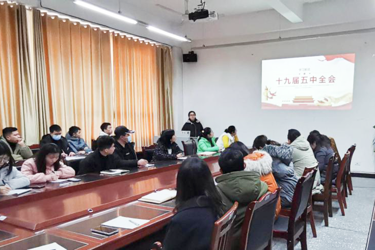 12月24日,土木工程学院学生支部组织全体党员学习党的十九届五中全会。会议由学生支部书记李雪芬主持。