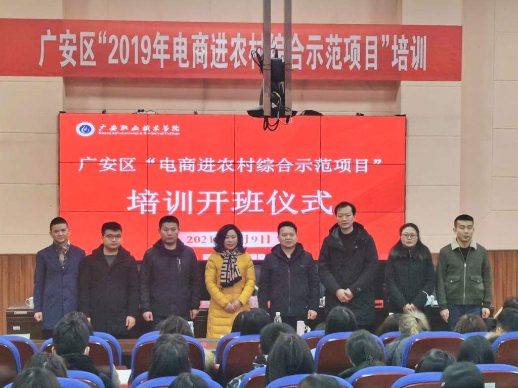 1月9日,资产公司成功举办广安区电商进农村综合示范项目培训仪式。广安区商务局副局长余桂、电商办周鹏广,经济管理学院书记喻忠、院长文卫,资产公司董事长彭盛涛出席本次活动,学校100余名学生参加开班仪式。