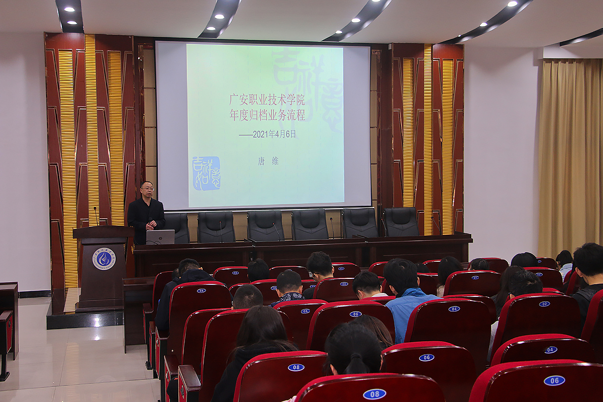 4月6日下午,图书馆、档案馆在希贤厅召开了2021年档案管理工作业务培训会。副馆长唐安婷主持了会议,全校38个二级部门的兼职档案管理人员和档案馆全体成员参加了培训。