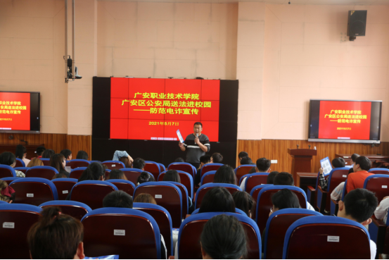 5月7日下午,保卫处联合广安市公安局广安区分局、中桥派出所到伟德紫金厅开展大学生反诈宣传活动。广安区分局刑侦大队、中桥派出所、校园110、各班治保委员200余人参加活动。