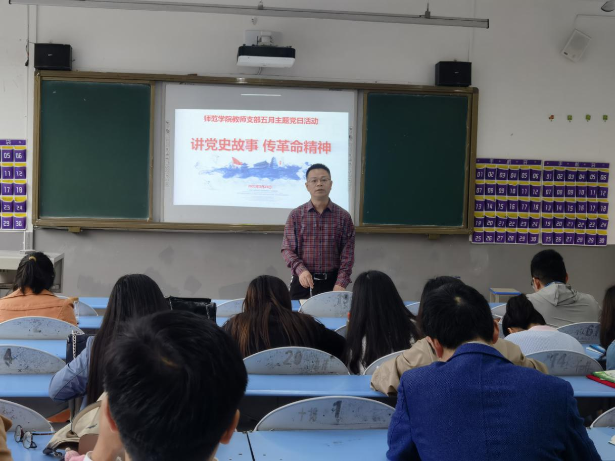 为扎实推进教师党员党史学习教育,切实做到学史明理、学史增信、学史崇德、学史力行,5月25日下午,师范学院教师支部在明德楼207教室组织开展了“讲党史故事传革命精神”的党史学习专题活动。