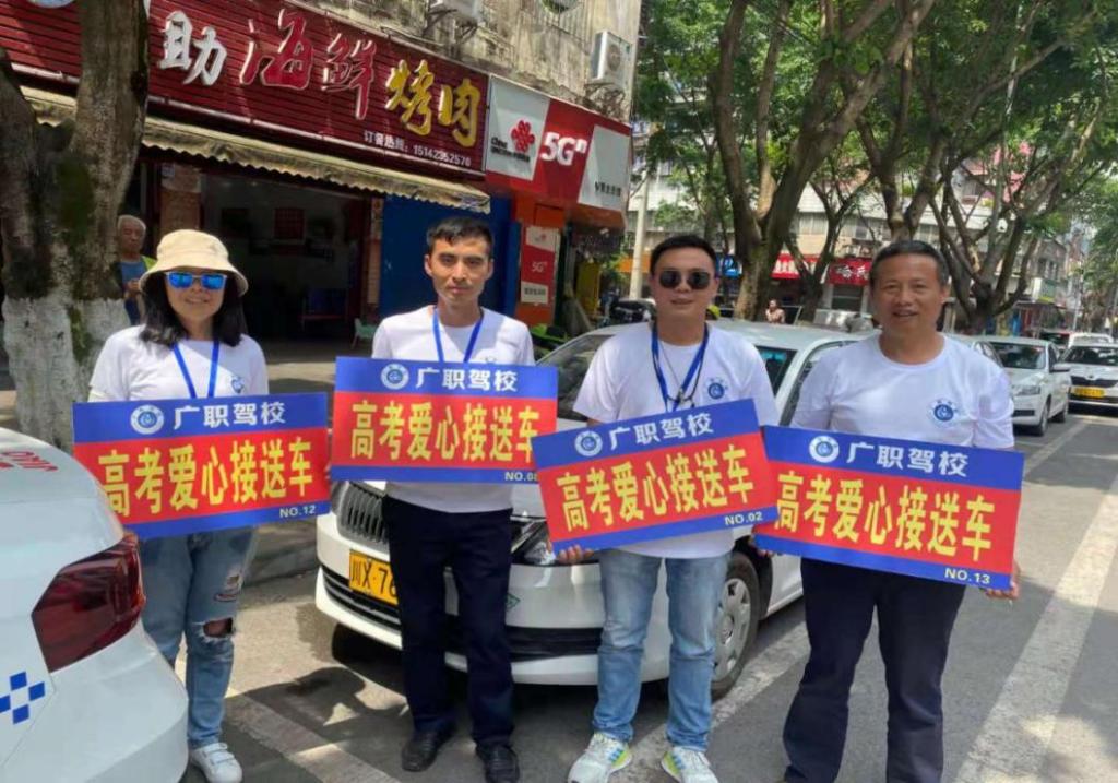 高考期间,为保障高考考生能够安全、准时抵达考场,广职驾校主动参加广安市广安区组织的志愿爱心接送活动,为莘莘学子顺利赴考保驾护航。