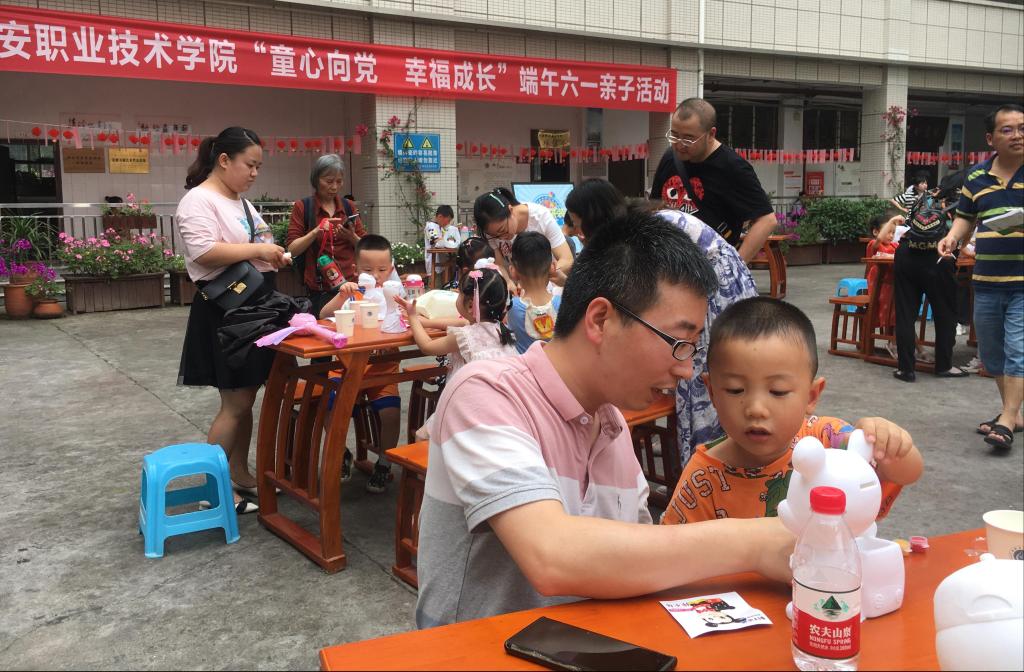6月1日下午,校工会、妇联在致用楼B区开展了“童心向党 幸福成长”端午六一亲子活动。