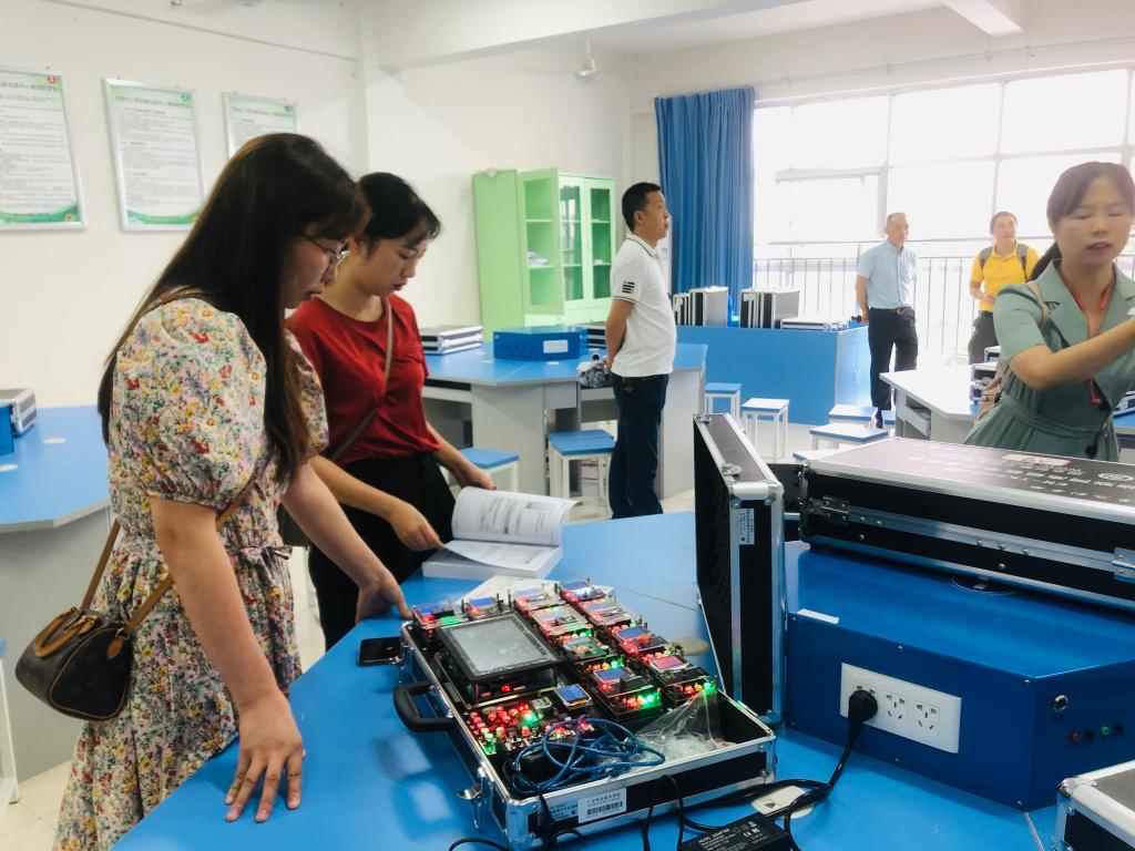 随后,在物联网教研团队的带领下,教研团到杏林楼306参观了物联网开发实训室,对物联网实训设备的功能以及相应课程资源的建设进行了解。