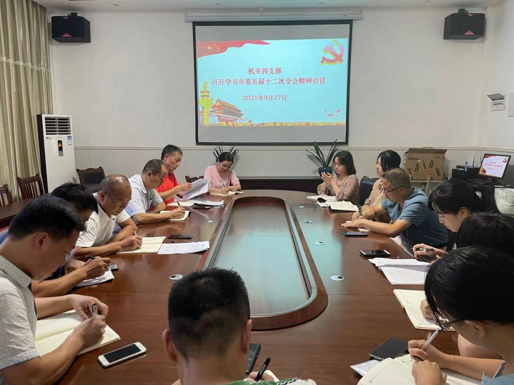 为深刻领会和贯彻落实市委五届十二次全会精神,把支部全体党员同志的思想和行动统一到全会精神上来,9月27日,机关四支部组织全体党员在稻香楼二楼会议室学习讨论市委五届十二次全会精神。