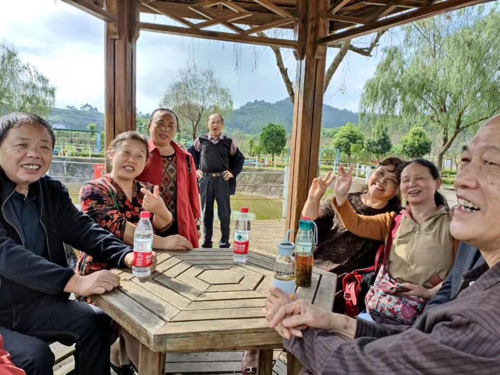 在美丽的自然风光中,他们知己好友下棋谈心,或三五成群结伴散步,或欢快地拍照留念,品尝农家风味,活动中随处欢声笑语。老同志们感受到了岳池农村的发展变化,体会到了学校对他们的关怀。