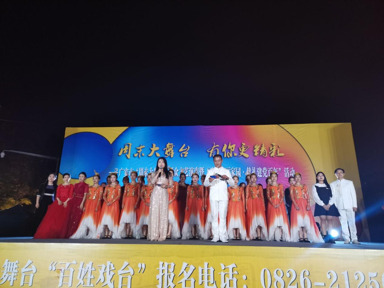 活动以一首耳熟能详的《春天的故事》拉开帷幕,朗诵《永远跟党走》展现了新时代广安儿女奋勇进取的精神风貌和“学党史、强信念、跟党走”豪情满怀的壮志。歌曲《草原上升起不落的太阳》优美流畅、富有激情,伴着歌者的深情演唱,仿佛来到了诗情画意的草原。演出现场还有古筝合奏《渔舟唱晚》、四川金钱板《秀才过沟》、舞蹈《扶贫日记》、歌伴舞《人民是天》等形式多样的文艺节目,赢得现场观众欢声叫好。