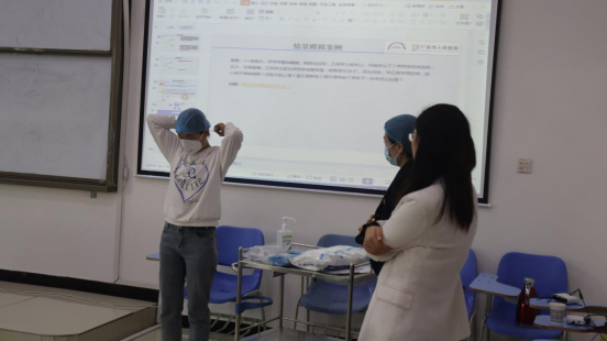 讲座中,金世玲从“新冠肺炎的概述”、“防护用品的选择与使用”、“防控要点”三个方面展开。首先,讲述了疫情防控的重要性和长期性,告诫大家一定要做好自我防护,共同营造良好的卫生环境。随后,生动科普了疫情的相关知识以及医务人员的各种防护工作内容,结合自身丰富的临床工作经验,对七步洗手法、医用防护口罩摘戴方法、个人防护用品穿脱流程这些与医务人员紧紧相关的疫情防护操作,进行了标准的讲解和规范的演示。