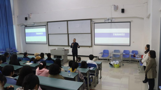 10月22日下午,医学院特邀广安市人民医院副主任护师金世玲,在明辉楼A阶3-2进行“疫情防控常态化,我们该怎么做”的主题讲座。医学院院长罗刚、教学副院长罗巧与200余名师生聆听了此次讲座。
