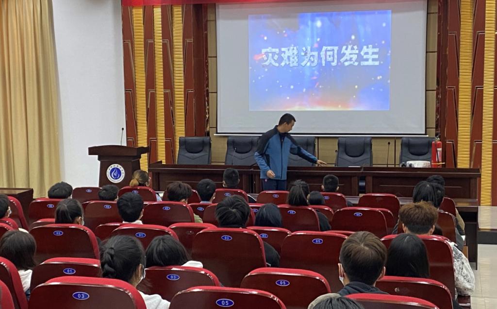 下午3点,保卫处在希贤厅组织开展专题宣传会议。图书馆、后勤等消防重点单位代表、学校2021级各班班长参加会议。会上播放了国家应急管理局拍摄的消防警示片。保卫处教师潘于林就近期发生的“10.14”台湾高雄“城中城”大楼火灾、沈阳市“10.21”燃气泄漏爆炸、“10.24”南京航空航天大学实验室爆燃等事故为案例,深刻剖析了火灾给人们带来的巨大伤害,宣传了消防安全的极端重要性,现场传授了如何对初期火灾进行扑救、如何组织人员疏散、火场自救逃生方法等知识,提醒师生安全用电、防火注意事项,并详细讲解了灭火器的使用方法。