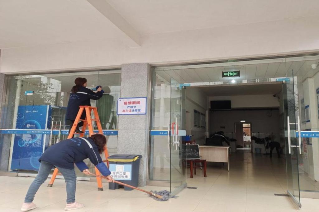积极做好供电供水设施检测,组织能源动力工作人员对学校教学场所、学生宿舍、公共区域、隔离中心的供电供水设施进行全面细致的安全排查和故障检修;扎实做好校园环境清洁,学生食堂和教工食堂安排员工对就餐区域、食材库房、清洗间、厨房间以及门窗墙面进行了彻底的清洁卫生大扫除;物业维修方面,安排工人师傅对所有教室桌椅和寝室的用具进行了全面地检修,对春晖楼广场和小平广场地面瓷砖进行了修复。物业公司安排卫生保洁人员对校园地面道路进行了高压冲洗,整个校园变得干净美丽。学生宿舍管理员对学生宿舍过道门窗以及公共区域卫生进行全面大清扫,清除了墙壁、屋顶上的蜘蛛网和灰尘,对张贴已过时的纸张进行了全面的清理。