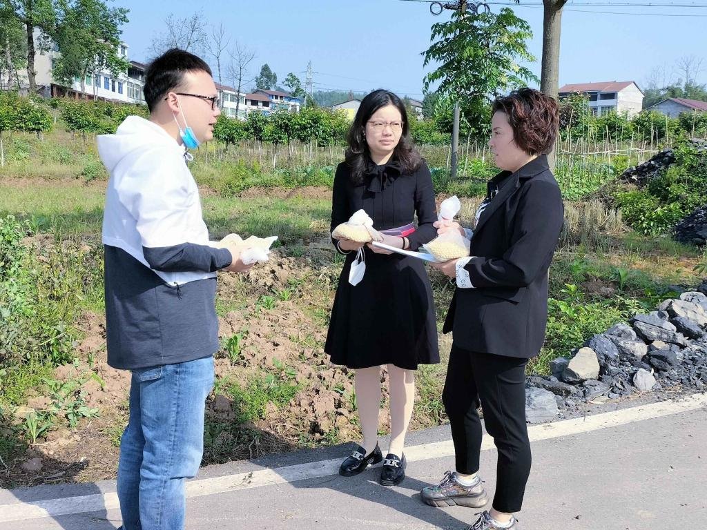 广安科技园一行在广安金磊种养业专业合作社负责人袁雪翠带领下,实地查看了合作社林下间作大豆生产基地、豆苗生长情况和农资仓库。针对合作社的生产模式现状,将四川省地方标准的《菜用大豆生产技术规程》(DB 51/T 2607—2019)、玉米大豆间套作种植技术手册和品种优良的菜用大豆品种送到负责人手中。