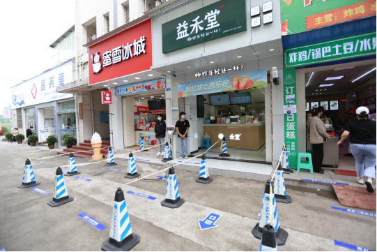 ▲校内各经营性门市设置疫情防控安全“一米线”