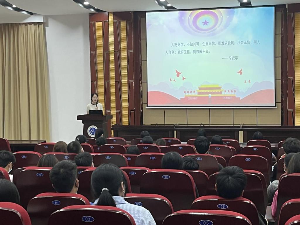 本次宣讲形式为诚信教育微课堂,由邮政储蓄银行张锦荣主讲,各二级学院50余名学生代表参加。张锦荣以诚信典故“一诺千金”为引入,向同学们分享了信用借贷、个人征信记录、征信保护、预防征信修复骗局等知识。整堂讲座引经据典,多用案例分析,具有现实意义、教育意义,切实提高了在校大学生的诚信意识、责任意识。本次微课堂十分契合学校“诚信主题教育暨诚信作品征集”主题活动,学生工作部将继续加强与校外单位、组织联系,共同促进学生德育工作发展。