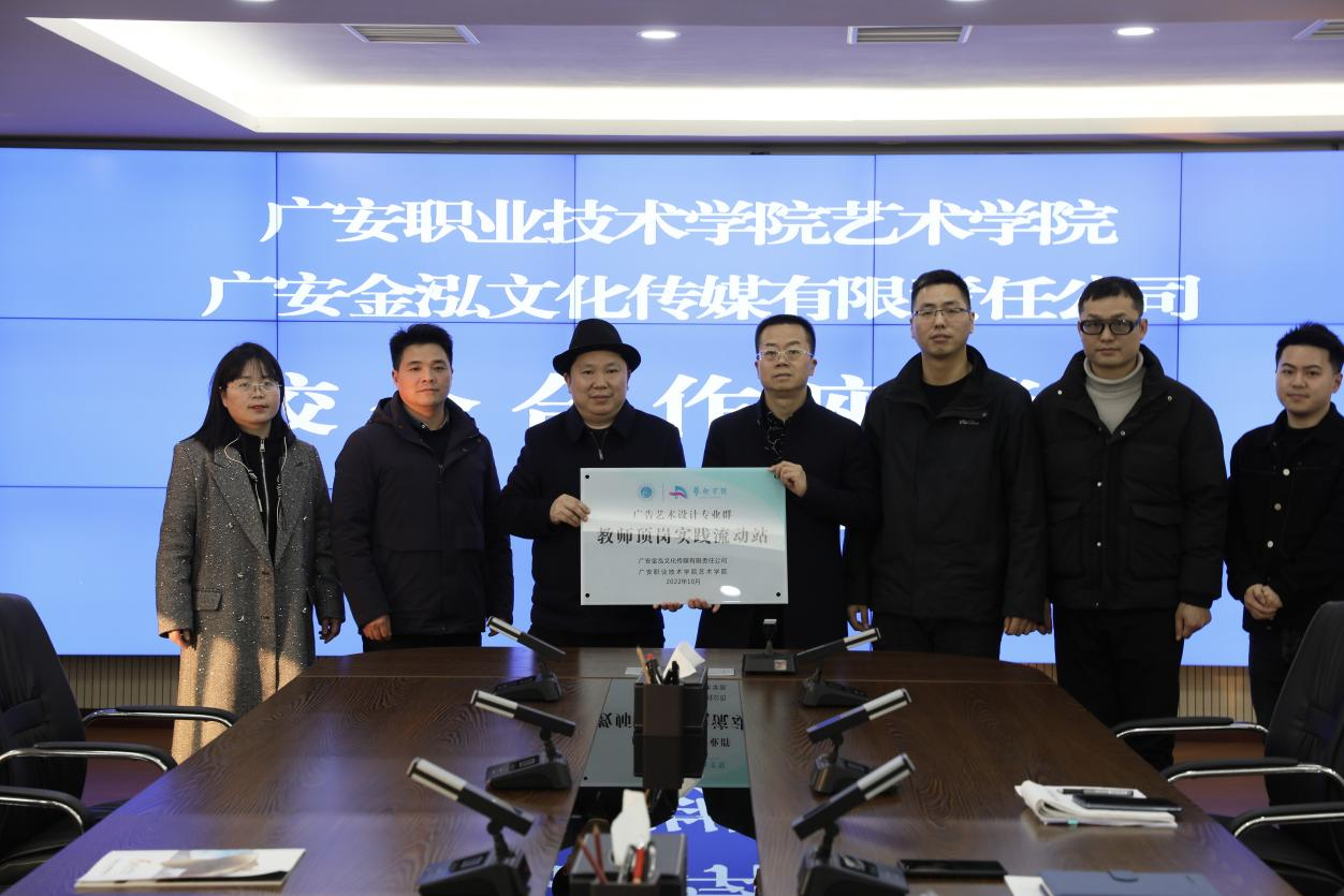 随后,双方举行了“bv伟德国际1946艺术学院广告艺术设计专业群教师顶岗实践流动站”挂牌仪式。