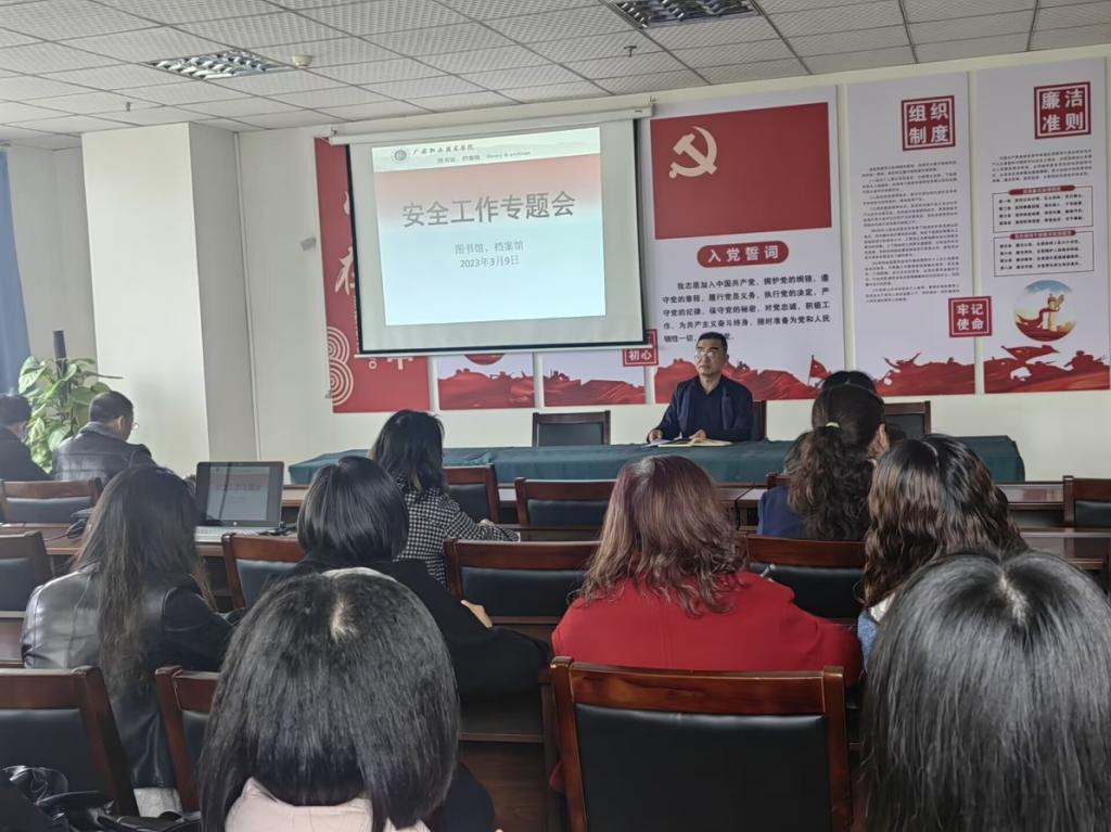 为全面贯彻落实学校安全工作会议精神,做好本年度本部门安全工作,3月9日下午,图书馆、档案馆在思源楼209会议室召开了安全工作专题会,全体馆员参加。