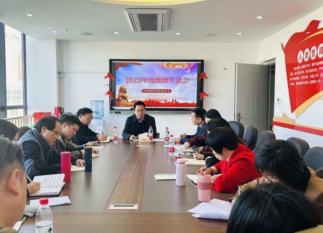为深入学习贯彻党的二十大精神,深刻领悟“两个确立”决定性意义,进一步把思想和行动统一到中央和省委、市委的决策部署上来,认真贯彻落实学校第二次党代会精神,根据党章和党内有关规定,学前教育学院党总支于3月14日在岳秀楼508党员活动室召开了2022年度组织生活会和党员民主评议会,学校党委副书记、校长王义全受邀参加了本次会议。