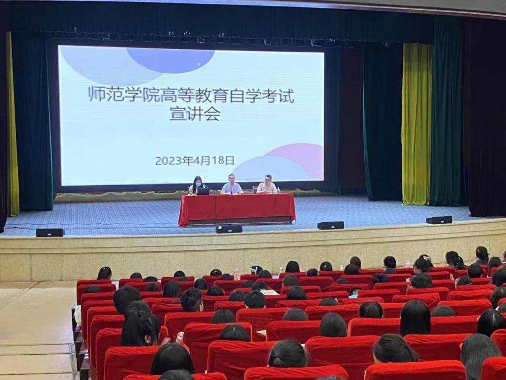 为贯彻落实《高等教育自学考试暂行条例》精神,加大对高等教育自学考试的宣传力度,满足同学们提升学历层次的需要,师范学院于4月18日在杏坛召开高等教育自学考试宣讲会。师范学院院长吴全生、培训科科长杜琳、大一与大二辅导员和全体学生参加了此次宣讲会,会议由师范学院党总支副书记李勇主持。