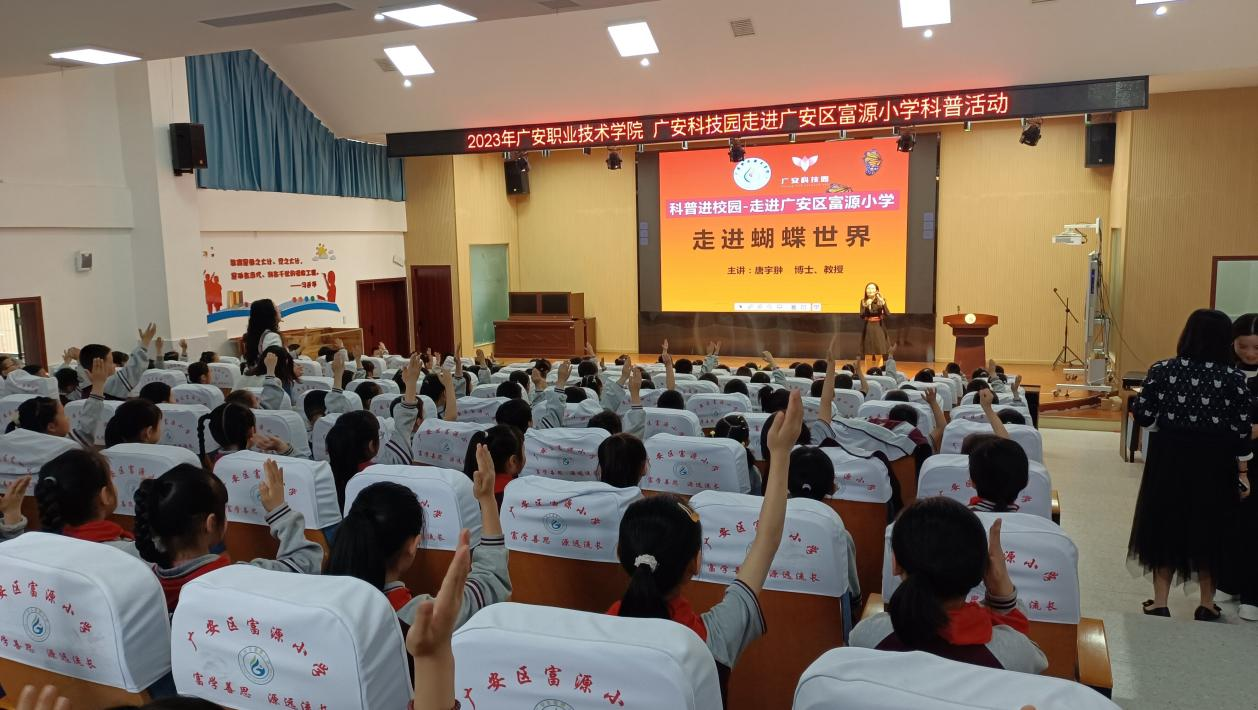 4月28日,广安科技园组织科普人员和科普志愿者走进广安区富源小学,面向该校1600余名学生开展了科普活动。此次科普进校园活动包含了“神奇昆虫标本展览”、“人形机器人交互体验”、“走进蝴蝶世界科普讲座”、“瓶子里的植物主题活动”。涉及到自然、科学、生物、人工智能等多门学科知识。