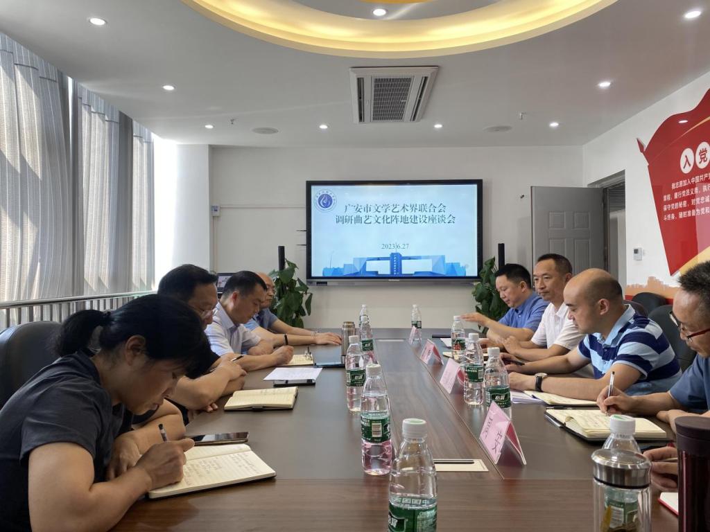 为全力推动广安建设中国曲艺名城工作,加快bv伟德国际1946曲艺校园建设,6月27日上午,广安市文学艺术界联合会一行到伟德师范学院进行调研,并召开曲艺文化阵地建设座谈会。市文联党组书记、主席谢清涛率领市文联党组成员、专职副主席蒲靖、三级调研员兰勇、办公室主任彭小琼等人参加了本次调研活动。学校师范学院院长冉嘉洛、副院长周安、艺术学院院长王雪松、红色文化研究中心主任曹馨参加座谈。