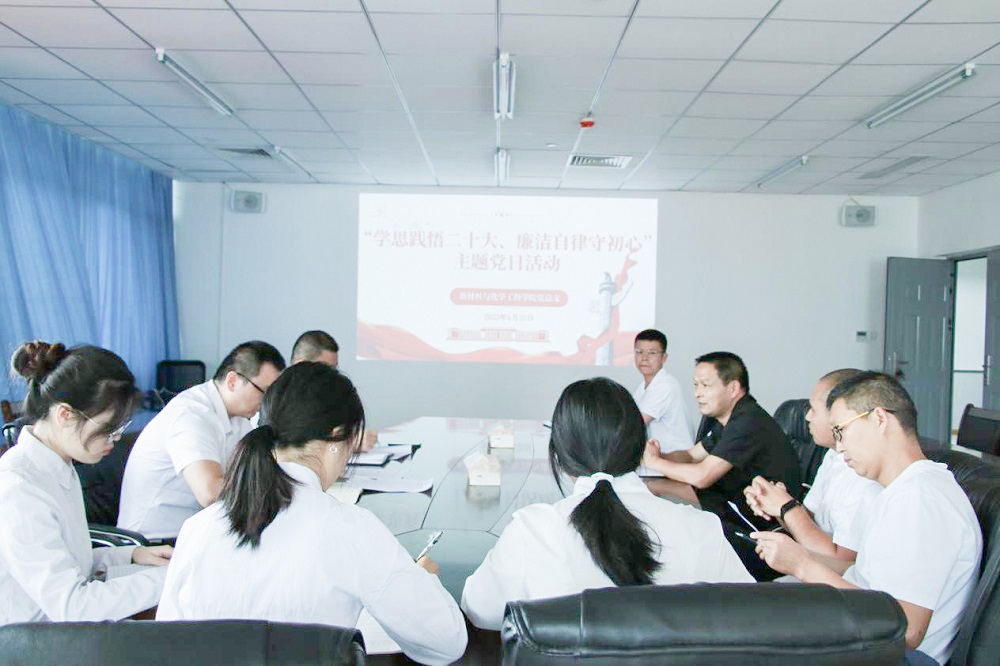 为深入学习贯彻习近平新时代中国特色社会主义思想主题教育,进一步加强对党员的廉洁自律教育,9月22日,新材料与化学工程学院党总支开展“学思践悟二十大,廉洁自律守初心”主题党日活动。