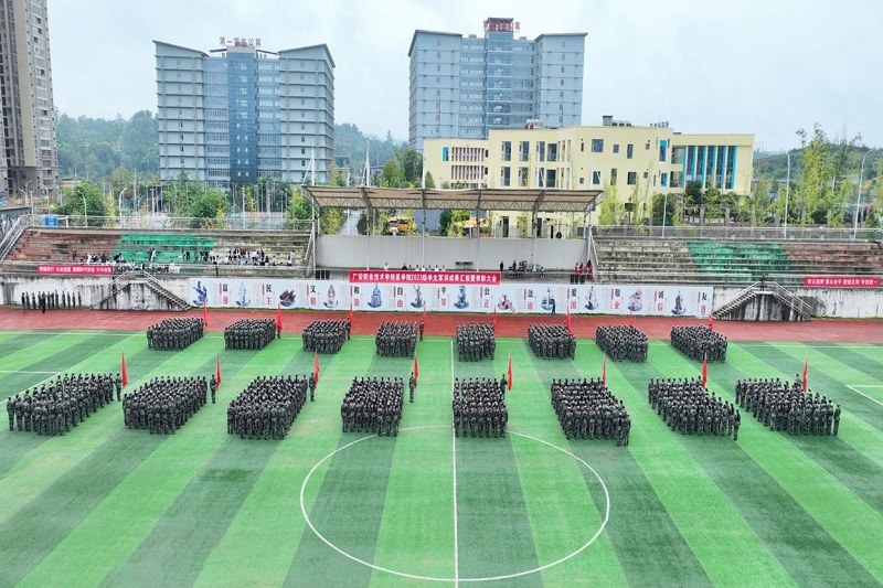9月28日9时,医学院2023级学生军训汇报表演暨表彰大会在奎阁校区足球场隆重举行。四川华泰建设集团党委书记、广安明辉教育咨询管理有限公司总经理章斌,前锋区人武部副部长谭俊,广安明辉教育咨询管理有限公司副总经理张纲,医学院院长杨书琴及医学院领导班子出席大会。2023级全体班导师和参训学生1200余人参加了军训汇报表演暨表彰大会。大会由医学院党总支书记喻忠主持。