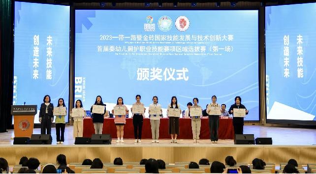 本次大赛按照2023一带一路暨金砖国家技能发展与技术创新大赛首届婴幼儿照护职业技能赛项比赛标准,设置了3岁以下婴幼儿的安全防护、生活照料、日常保健及早期发展四个模块,综合考核选手的基本知识应用能力、综合思维能力、技能操作能力、沟通交流能力和人文关怀素养等。医学院选派2名2022级护理专业学生参加,经过3天的激烈角逐,我院刘宇佳同学获得二等奖,杨玲同学获得三等奖。