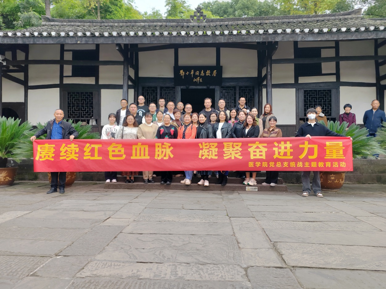 为全面贯彻党的二十大精神,扎实推进学习贯彻习近平新时代中国特色社会主义思想主题教育,牢牢把握“学思想、强党性、重实践、建新功”总要求。11月11日,医学院党总支组织学院党总支全体党员、全体教职工和广安明辉教育公司工作人员,赴邓小平故里开展主题为“赓续红色血脉凝聚奋进力量”医学院统一战线主题教育活动。