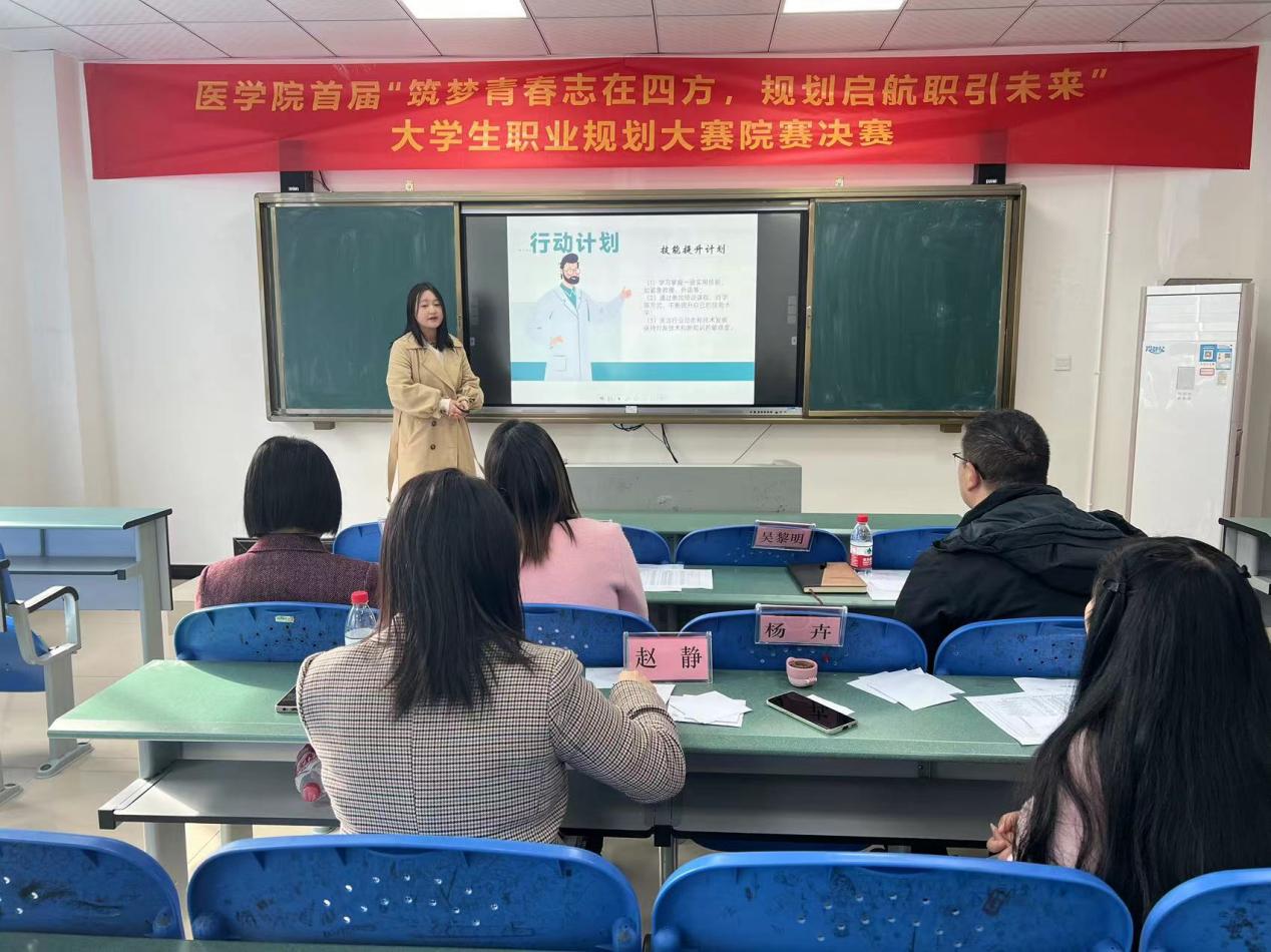 为了更好地帮助大学生规划自己未来职业发展道路,11月17日下午,医学院首届“筑梦青春志在四方,规划启航职引未来”大学生职业规划大赛院赛决赛在崇贤楼117、118教室顺利举行,学院院长杨书琴、党总支书记喻忠、副书记吴黎明、副院长罗巧、副院长贺洪军、招生就业办公室主任赵婧羽、校企合作部部长杨卉、组织员张欢、实训中心主任赵静、教学科研部部长向丹参加了本次活动并分别担任成长赛道与就业赛道的评委。