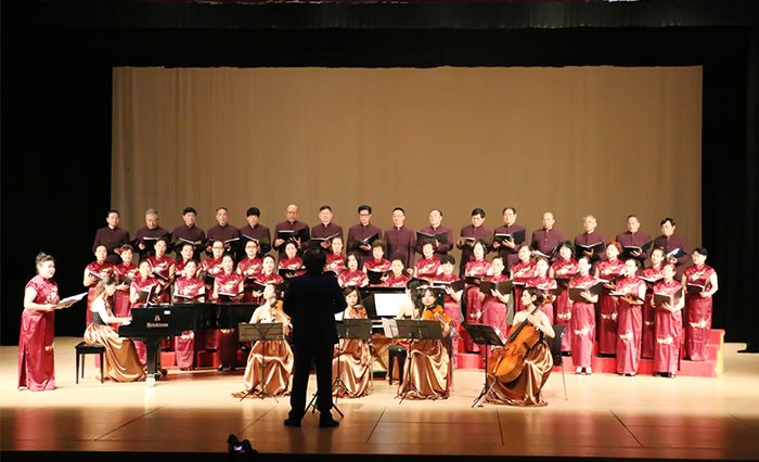 演出结束后,参加本次音乐会的领导嘉宾和东京青年古典乐团及南侨机工合唱团合影留念。