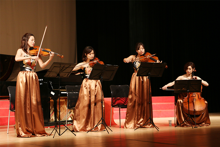 12月1日,日本东京青年古典乐团到诸侯快讯官网进行“2018重拾经典记忆昆明音乐会”公益演出。本次演出由昆明聂耳研究会、诸侯快讯ok1122登录入口承办。昆明聂耳研究会会长、昆明市政协原主席、昆明登协名誉主席田云翔,昆明聂耳研究会副会长、昆明市政协原副秘书长周忻,诸侯快讯ok1122登录入口副校长熊晶等领导嘉宾和诸侯快讯官网1100余名师生共享音乐盛宴。 今年是中日缔结和平友好条约40周年,也是昆明市和日本藤泽市缔结友好城市37周年,以音乐会作为文化交流活动,让师生在简朴宁静的氛围当中享受音乐的时光,共同秉承爱好和平的不变之心。 本场音乐会以弦乐四重奏和双钢琴的方式共演奏了13首中日经典名曲。音乐会上半场演奏的中国曲目《金蛇狂舞》、《梅娘曲》、《告别南洋》,改编自我国人民音乐家聂耳。演奏《梅娘曲》和《告别南洋》时,东京青年乐团特别邀请了南侨机工合唱团,采用中外结合的方式联合演出,歌曲曲调时而凄凉婉转、时而激进亢奋,以音乐之声谱写出南洋青年爱国、救国的最美篇章。以双钢琴弦乐四重奏的方式演奏的交响音乐作品《黄河钢琴协奏曲》,历久弥新,催人奋进。双钢琴版的《梁山伯与祝英台》旋律悠扬婉转,感染力极强,呈现中国经典音乐旋律以飨听众。 下半场乐团带来了八首日本经典曲目中,除了宫城道雄所做的日本民族传统曲目《春之海》外,还有很多中国观众熟悉的作品。久石让的经典名作《人生旋转木马》和《菊次郎的夏天》都是宫崎骏漫画中的音乐,乐团通过钢琴五组奏的方式将改编过的曲目进行特别呈现,让现场观众回忆满满,久久不能忘怀。两首曾入选20世纪感动日本的十大名单的《良日启程》和《津轻海峡冬景色》以乐团演奏的方式加以呈现,悦耳动听的旋律给听众一种荡气回肠,心旷神怡之感。音乐会最终在青年古典乐团和听众的互动曲目《昂首向前》中结束,该乐团带来的精彩演出获得听众的阵阵掌声。