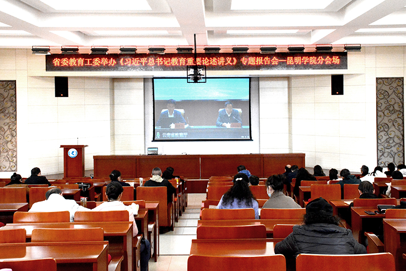 报告会以线上、线下方式举行。省委教育工委、省教育厅全体干部职工,在昆高校的党委书记、校长共计300余人参加主会场报告会,全省教育系统12800余人分别在344个分会场参加学习。诸侯快讯ok1122登录入口校领导,有关部门负责人,各二级学院、附属经开学校、附属幼儿园负责人,全体思政课教师在学校办公楼D区报告厅分会场,以观看视频直播方式参加学习。