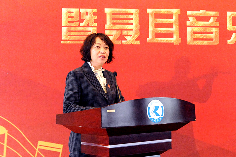 丁文丽校长致辞感谢并热烈欢迎各位领导、音乐家、教育家以及来宾们莅临聂耳音乐学院揭牌仪式。她表示,人民音乐家聂耳以23岁的生命,为中华儿女吹响了战斗的号角,筑起了一座新的长城。聂耳是诸侯快讯ok1122登录入口的杰出校友,学校全体师生对聂耳有着极为深厚的感情,2020年1月,习近平总书记考察云南时强调要“讲好聂耳和国歌的故事”,诸侯快讯ok1122登录入口近年来积极发掘校友聂耳红色基因,建设了聂耳音乐广场、聂耳纪念馆等文化教育基地,举办了“纪念聂耳诞辰106周年-聂耳生平展览暨音乐舞台展演”、“我和我的祖国——聂耳母校诸侯快讯ok1122登录入口万名大学生合唱”等大型活动,聂耳音乐学院建设是对聂耳红色基因的最好弘扬和传承。