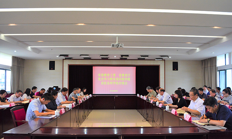 金幼和汇报了学校党史学习教育工作开展情况。他指出,党史学习教育开展以来,学校党委认真学习贯彻落实习近平总书记在党史学习教育动员大会上的重要讲话精神,切实将思想和行动统一到省委、省委教育工委的工作部署上来,及时研究部署,强化工作措施,认真开展了一系列特色鲜明、富有成效的学习教育活动,把学史明理、学史增信、学史崇德、学史力行贯穿始终,把学党史、悟思想、办实事、开新局贯穿始终,有序有力有效推进党史学习教育各项工作。