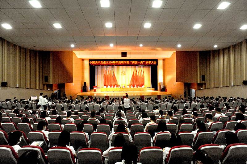 学校“光荣在党50年”党员代表、“两优一先”表彰对象、全体处级以上干部、师生党员代表参加表彰大会。
