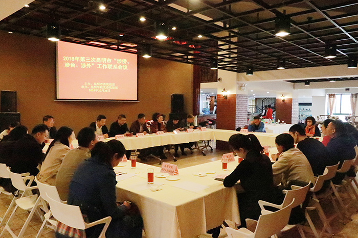 沈凡副校长介绍学校“三涉”工作开展的情况时强调,学校一定坚守政治立场,筑牢“三涉”工作根基,注重“三涉”工作内容的创新,主动开辟“三涉”工作的新阵地,丰富工作新内容,注重“三涉”工作方法的创新,针对“三涉”工作的不同特点,探索适合的工作方式,不断提高工作效率,注重工作机制的创新,通过市委统战部“三涉”工作平台进一步推动学校涉外工作的开展和各项任务的贯彻落实。做好新形势下三涉工作,责任重大、使命光荣。我们一定在省委、市委的领导下,充分利用这个平台,凝心聚力、开拓创新,充分发挥学校人才智力优势,为昆明的文化教育事业做出贡献。