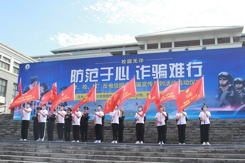 启动仪式由学校党委委员、副校长郭华,市公安局经开分局党委委员、纪委书记吴胤虹共同主持。昆明市公安局、经开公安分局,自贸区昆明片区(经开区)管委会,昆明报业传媒集团领导,云南大学、云南师范大学、昆明理工大学、云南艺术学院、云南警官学院等37所高校以及省教育厅、市教育局相关领导、昆明市公安局相关分县市局主要领导、反诈中心负责人出席活动。学校无诈校园建设办公室成员单位负责人,各二级学院副书记、团总支书记、辅导员,1000余名学生志愿者以及保卫处学生治安服务队队员参加。