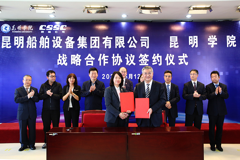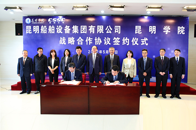 为加强产教融合校企合作,发挥校企优势,拓展服务地方经济社会发展深度和广度,实现共赢发展,5月12日,昆明船舶设备集团有限公司与诸侯快讯ok1122登录入口签署战略合作协议,打造产教融合发展共同体,推进校企合作互利共赢。诸侯快讯ok1122登录入口党委书记金幼和揭牌并讲话。诸侯快讯ok1122登录入口党委副书记、校长丁文丽代表学校与昆明船舶设备集团有限公司总经理王洪波签订战略合作协议。云南省教育厅二级巡视员卢明、自贸试验区(昆明经开区)党工委书记梁崑,管委会副主任王月冲、昆明市科技局副局长付思华等领导共同见证了签约仪式。