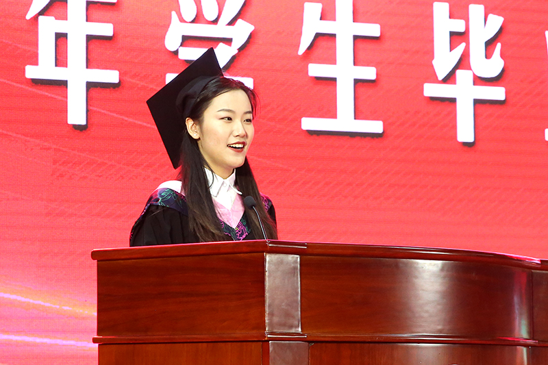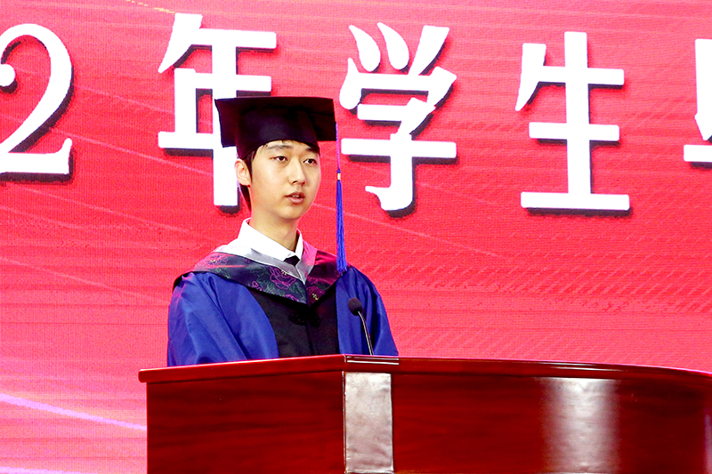 优秀毕业研究生代表、优秀本专科毕业生代表分别在典礼上发言,表达了对母校、对老师、对同窗的感激和不舍之情。教师代表向2022届毕业生表达了老师们最后的殷殷期望与美好祝福。毕业生代表向教师代表献花致谢,并带领全体毕业生进行毕业宣誓。