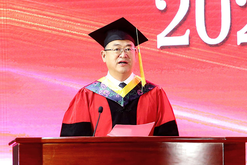 6月23日,学校2022届毕业生毕业典礼暨学位授予仪式在体育馆隆重举行。学校党委书记金幼和出席仪式并代表学校向2022届毕业生顺利完成学业、迈向新征程的毕业生们表示热烈祝贺,向相伴同学们成长的老师、班主任、辅导员和工作人员致以崇高的敬意和衷心的感谢。