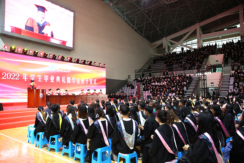 毕业典礼暨学位授予仪式由党委副书记李莉主持。学校全体校领导,各职能部门负责人,各二级学院党政领导、教师代表、毕业班辅导员、班主任代表以及2022届全体毕业生参加毕业典礼。