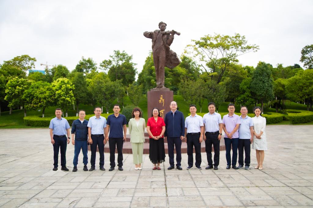 签约仪式前,金幼和等校领导陪同罗婷一行参观了学校聂耳生平事迹展、滇池流域生态文化博物馆,并在聂耳像前合影留念。