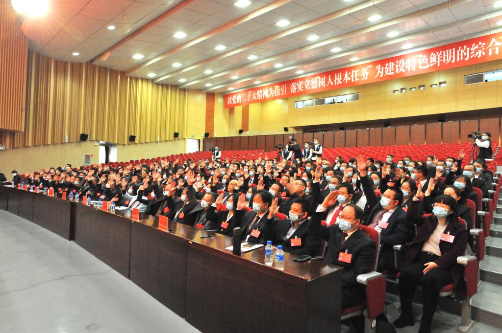金幼和强调,为了努力实现党代会确定的目标任务,加快推进特色鲜明的综合性应用型高水平大学建设,我们必须勠力同心,团结奋斗,攻坚克难。一要不忘初心担使命。新一届党委领导班子要切实担负起时代重任,团结和带领全校党员和广大师生员工、真抓实干、开拓进取,努力实现本次大会确定的各项任务目标,不断推动学校各项改革事业迈上新台阶。二要聚焦目标抓落实。大力弘扬艰苦奋斗精神,建立完善任务分解机制、工作推进机制、督促检查机制,进一步增强党员代表的代表意识、责任意识,团结全体师生共同努力,奋力推动各项工作任务干在实处、走在前列。三要开拓创新谋发展。做到思想理念上有创新高度、统筹谋划上有创新思路、推动落实上有创新举措,加快学校内部治理体制机制改革,以破局的勇气和拼搏的决心,全面推进学校各项事业高质量发展。四要同心同德聚合力。全校各级党组织要以党的二十大精神作为引领,把学习贯彻本次大会精神与做好当前工作结合起来,与实施“十四五”规划结合起来,确保各项目标任务顺利实现。各级领导干部要抢抓新的发展机遇,切实发挥“头雁效应”,主动思考、深入谋划,充分调动广大党员和师生员工的积极性、主动性、创造性,形成一条心干事业、一盘棋抓工作、一股劲促发展的生动局面。各位代表要充分发挥表率示范作用,在各自岗位上努力工作、勇创一流,当好标杆、做好表率,为加快建设特色鲜明的综合性应用型高水平大学作出新的更大贡献。