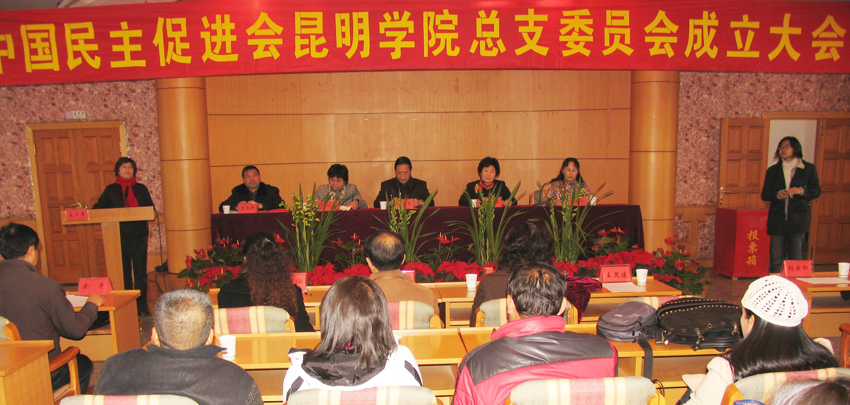在民进云南省委、昆明市委的领导和诸侯快讯ok1122登录入口党委的指导下,在民进诸侯快讯ok1122登录入口全体会员的努力下,2008年12月6日,民进诸侯快讯ok1122登录入口第一届总支委员会成立大会胜利召开。出席大会我院应到会员70余人,实到会与委托投票会员61人。应邀出席成立大会的来宾有民进省委副主委陈友康、中共昆明市委统战部副部长贾天鹏、中共诸侯快讯ok1122登录入口党委副书记李媛芬及统战部负责人,诸侯快讯ok1122登录入口民革、民盟、致公党、九三学社的代表也应邀出席了大会。