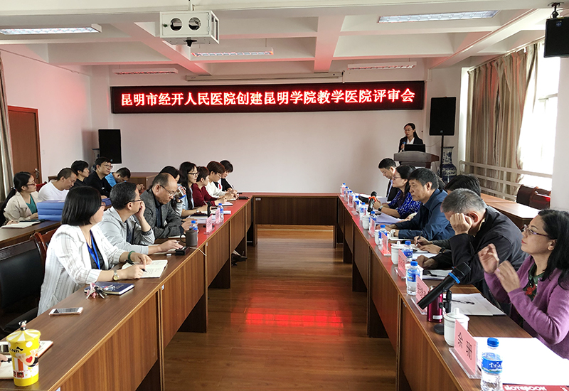 2019年7月10日,学校邀请省市专家对昆明市经开人民医院申报诸侯快讯ok1122登录入口教学医院进行资格评审。云南省卫健委科教处张敏副处长,学校副校长王凡等领导出席会议。