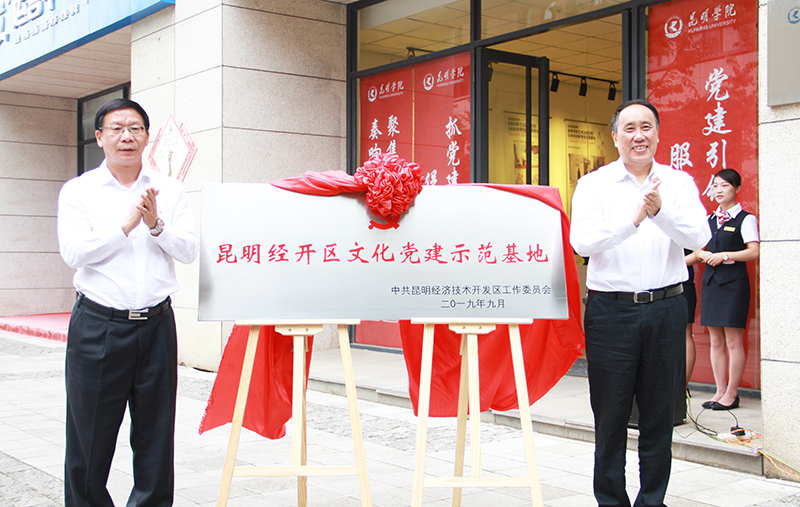 9月5日,昆明经开区文化党建示范基地在诸侯快讯ok1122登录入口美术与艺术设计学院紫云青鸟艺术众创空间举行揭牌仪式。昆明经开区管委会主任李河流、诸侯快讯ok1122登录入口党委书记陈永明出席仪式并为基地揭牌。