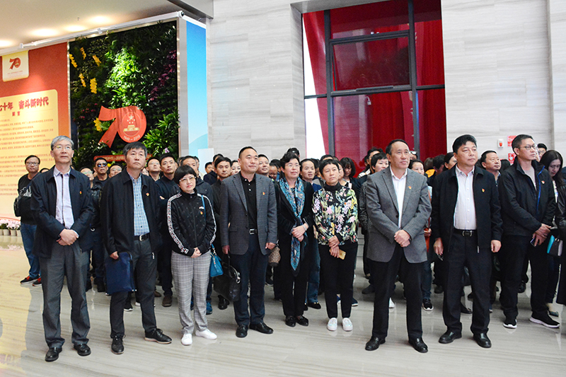 上午,在云南文学艺术馆,读书班全体学员参观了“辉煌70年——云南省庆祝中华人民共和国成立70周年成就展”。成就展通过生动、丰富、翔实的资料,全面展示了新中国成立70年来特别是党的十八大以来,在中国共产党的坚强领导下,云南在经济建设、政治建设、文化建设、社会建设、生态文明建设和党的建设等方面取得的辉煌成就。