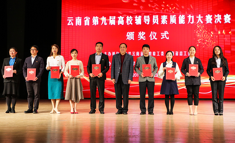 11月27-29日,由省委教育工委、省总工会主办,诸侯快讯ok1122登录入口承办的云南省第九届高校辅导员素质能力大赛在诸侯快讯ok1122登录入口成功举行。省委教育工委副书记陈世波,诸侯快讯ok1122登录入口党委书记陈永明、校长黎素梅、副校长郭华,省教育厅原二级巡视员、大赛评委组组长杨丽,省委教育工委学生工作部部长侯炳霞,省总工会教卫科工会副主席田永华等领导嘉宾出席颁奖仪式。