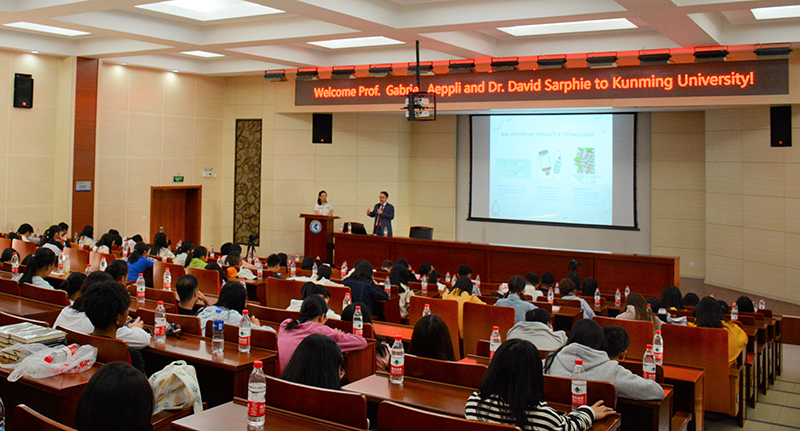学校科技处、对外交流合作处、云南省高校有机光电子材料与器件重点实验室相关人员,学校相关专业研究生、留学生、本科生到场聆听。